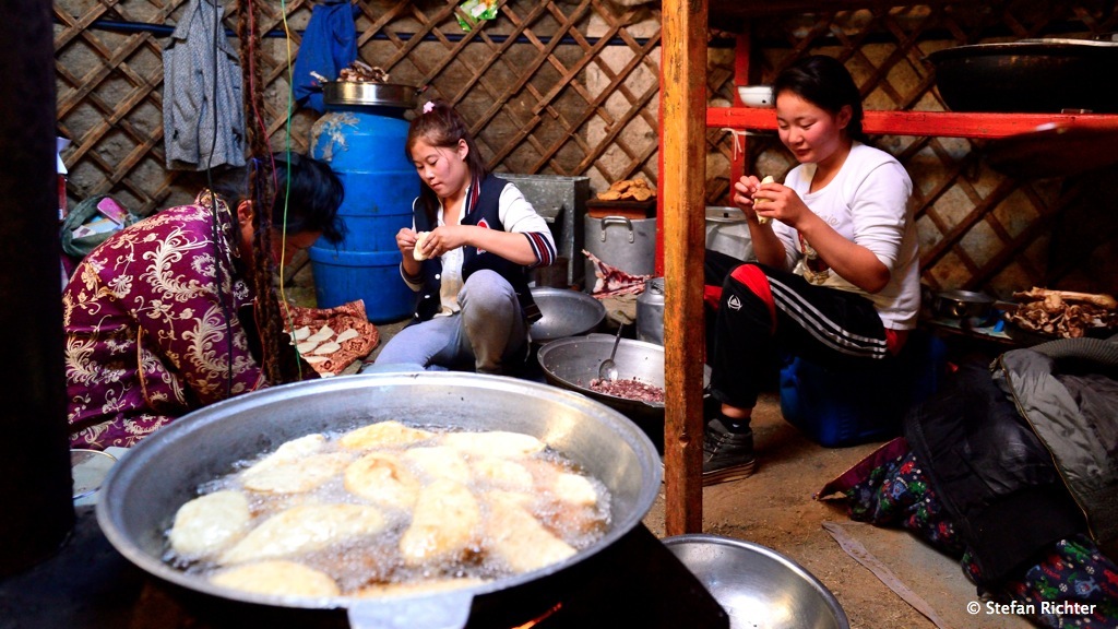 Die Frauen bei der Herstellung von „Khuushuur“ – Frühstück / Teigtaschen mit Hammelfleisch. 11. August 2013 von julia13713