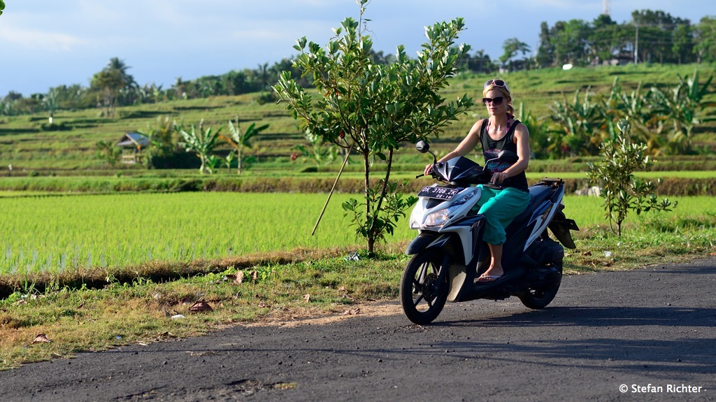 Julia lernt Rolllerfahren.