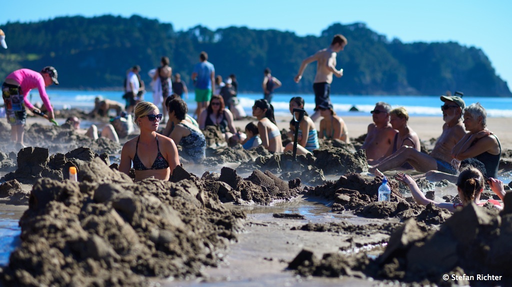 Hunderte von Menschen graben sich an der selben Stelle ein Loch im Sand, um darin wie in der Badewanne zu sitzen… @ Hot Water Beach. 31. März 2014 von julia13713