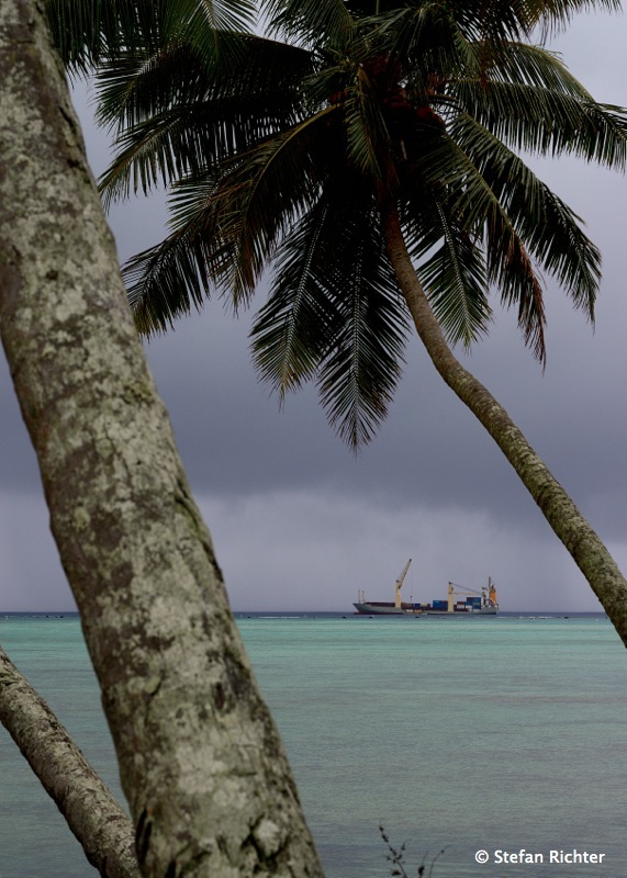 Das monatliche Frachtschiff ist da. Allerdings muss es vor dem Riff bleiben. Die Bootspassage ist zu flach für das Containerschiff. 12. Juni 2014 von julia13713