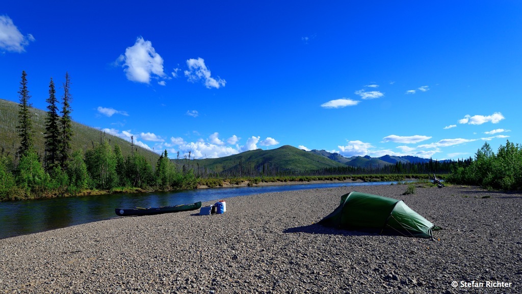 Unser Camp für die Nacht ist auf einer der vielen Kiesbänke am Fluss errichtet. 1. August 2014 von julia13713