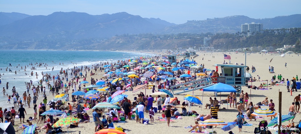 Der Strand ist so lang und so breit, und trotzdem liegen alle dicht gedrängt am Santa Monica Pier. 1. August 2014 von julia13713